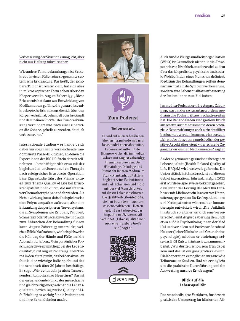 Unser Primar ist in der aktuellen Ausgabe des Medica Magazins vertreten! Sie finden ihn sowohl in einem spannenden Podcast als auch in einem ausführlichen Artikel, in dem er Einblicke in seine Fachgebiete und die Kernfrage Lebensqualität gibt.