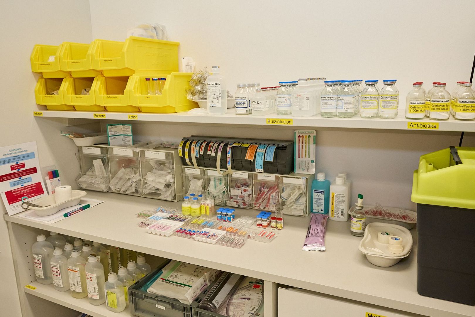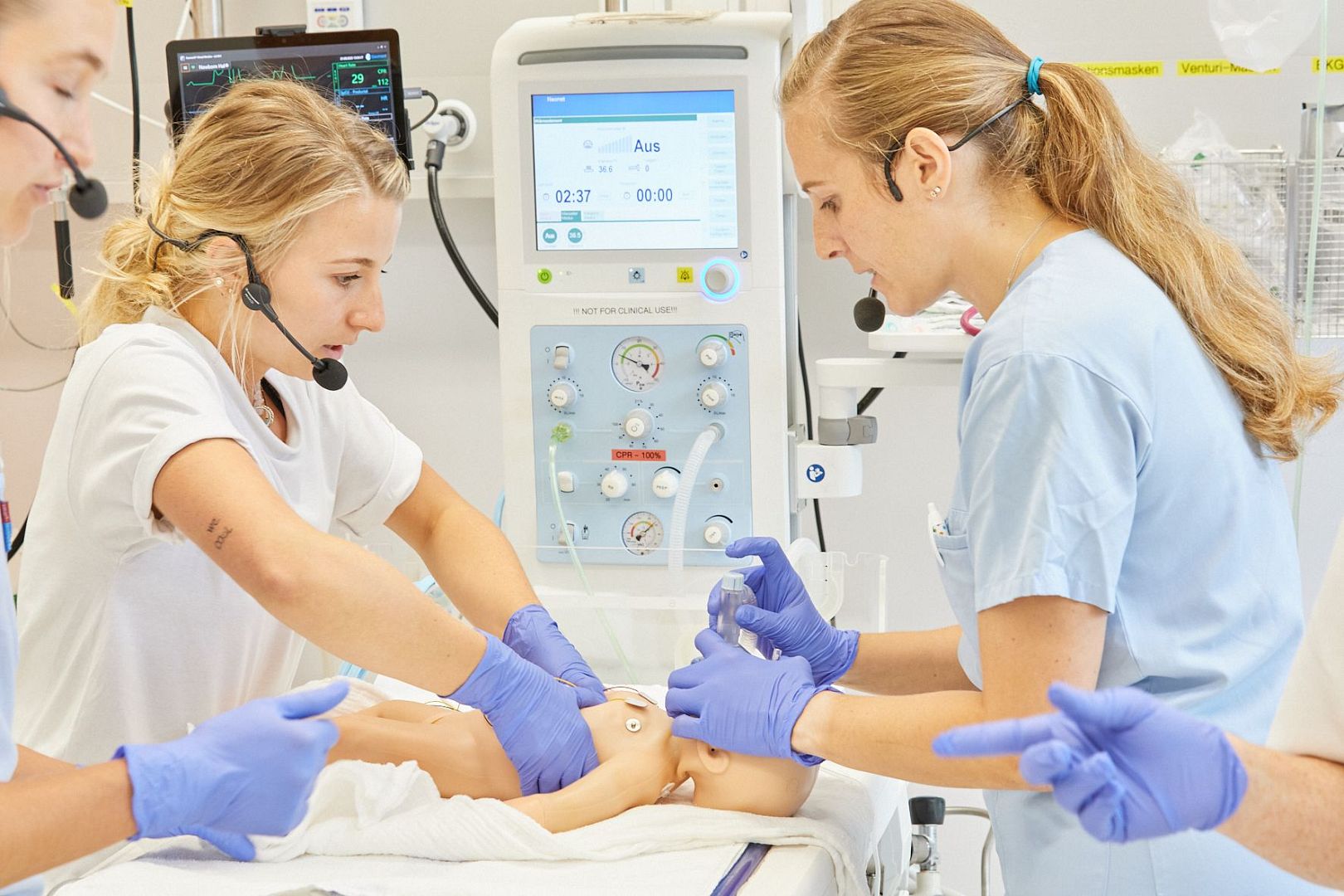 Wir sind Center of Excellence der Firma Gaumard. Zusätzlich verwenden wir für Basic-Life-Suppport-Trainings Low- bzw. Mid-Fidelity-Simulatoren. Neben den Simulatoren benutzen wir Echt- und Simulationsgeräte wie Defibrillatoren. Beatmungsgeräte (freundlicherweise zur Verfügung gestellt von Dräger) und Spritzenpumpen, die uns ebenso in der realen Patientenversorgung im A.ö. Bezirkskrankenhaus Kufstein unterstützen. Für das Training nutzen wir unterschiedliche Übungsmedikamente und -infusionen.